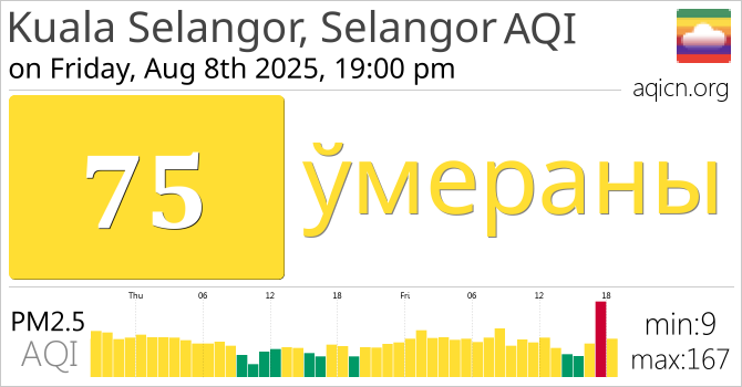 Якасць паветра ў Kuala Selangor, Selangor, Malaysia складае ўмераны