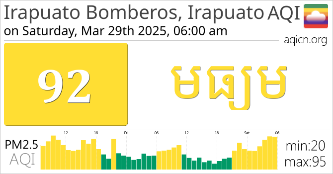 គុណភាពខ្យល់របស់ Irapuato Bomberos, Irapuato, Mexico គឺ មធ្យម