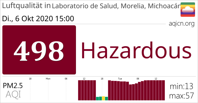 In Laboratorio de Salud, Morelia, Michoacán, Mexiko ist die Luftqualität Hazardous