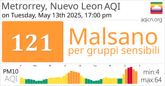 La qualità dell'aria a Metrorrey, Nuevo Leon, Mexico è Malsano per gruppi sensibili