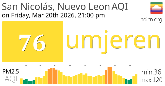 Kvaliteta zraka u gradu San Nicolás, Nuevo Leon, Mexico je umjeren