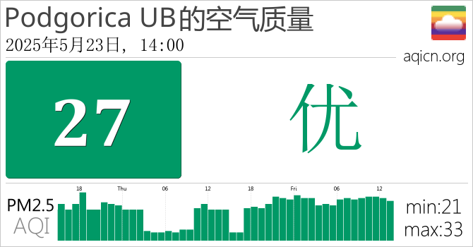 Podgorica UB, Montenegro的空气污染指数是优