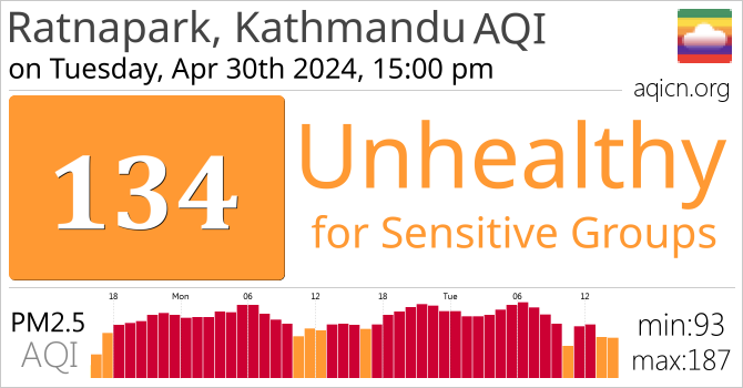 Ratnapark, Kathmandu, Nepal Air Quality is Unhealthy for Sensitive Groups