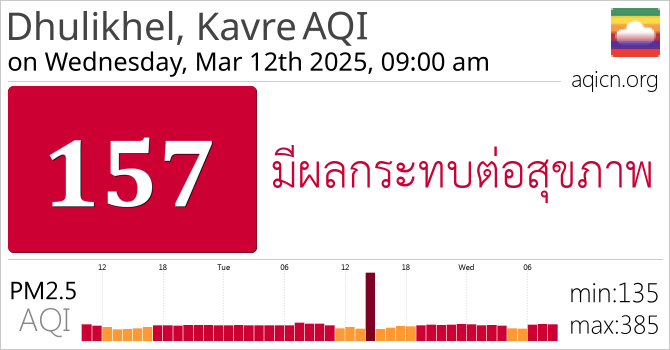 คุณภาพอากาศของ Dhulikhel, Kavre, Nepal อยู่ที่ มีผลกระทบต่อสุขภาพ