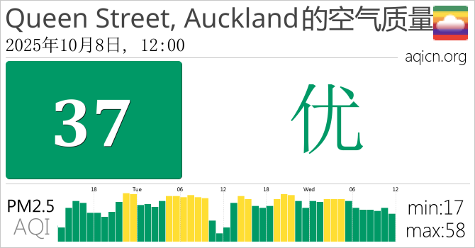 Queen Street, Auckland, 新西兰的空气污染指数是优