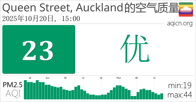 Queen Street, Auckland, 新西兰的空气污染指数是优