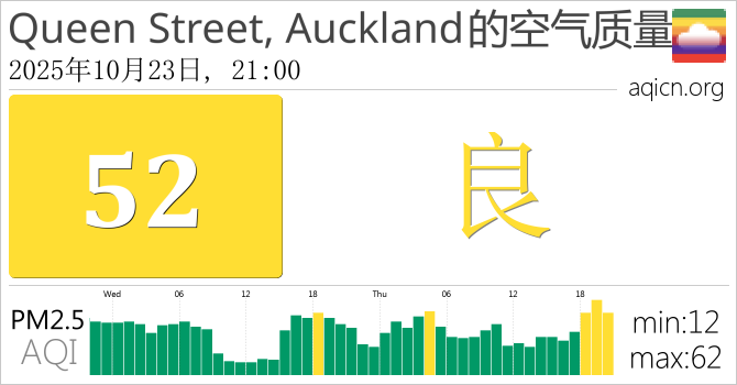 Queen Street, Auckland, 新西兰的空气污染指数是良