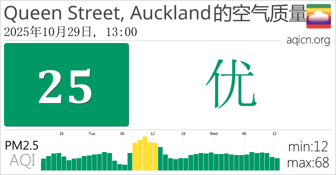 Queen Street, Auckland, 新西兰的空气污染指数是优