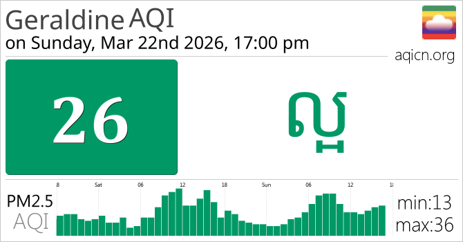 គុណភាពខ្យល់របស់ Geraldine, New Zealand គឺ ល្អ
