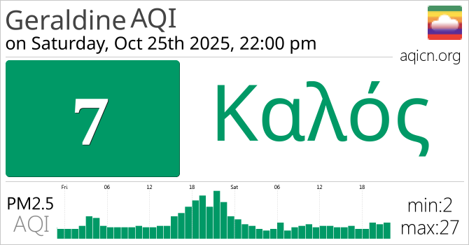 Η ποιότητα αέρα του Geraldine, New Zealand είναι Καλός