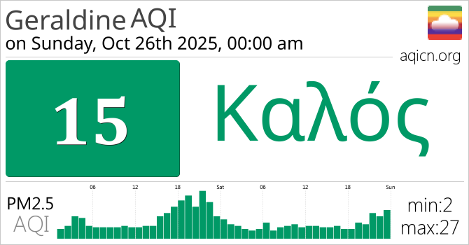 Η ποιότητα αέρα του Geraldine, New Zealand είναι Καλός
