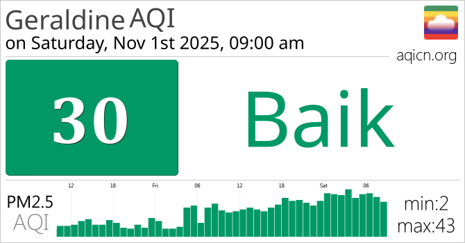 Kualitas Udara di Geraldine, New Zealand adalah Baik