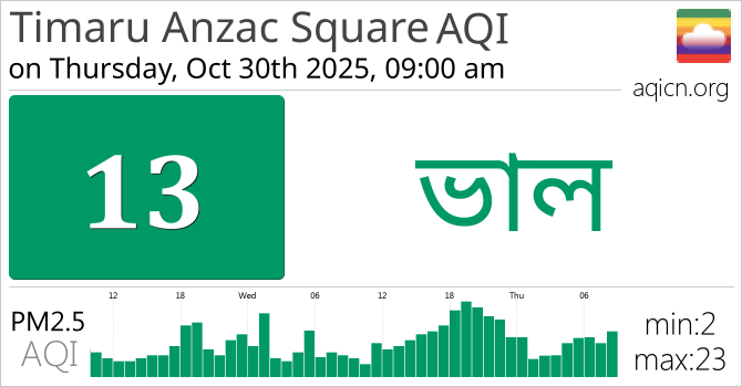 Timaru Anzac Square, New Zealand-এর বায়ুর গুণমান ভাল