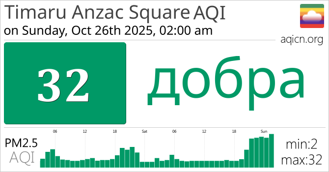 Якасць паветра ў Timaru Anzac Square, New Zealand складае добра