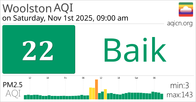 Kualitas Udara di Woolston, New Zealand adalah Baik