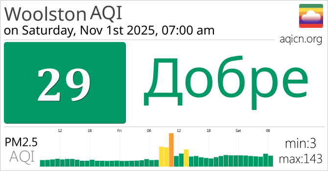 Якість повітря в місті Woolston, New Zealand становить Добре