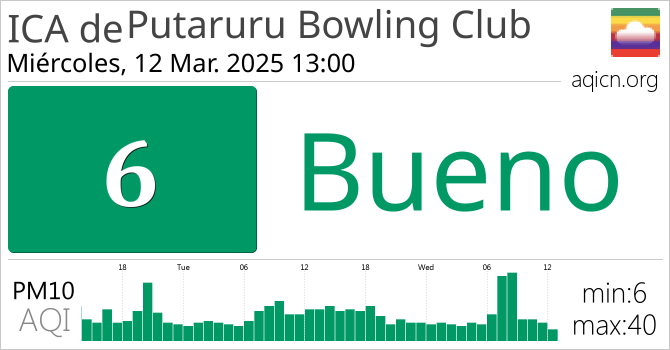 La calidad del aire de Putaruru Bowling Club, Nueva Zelanda es Bueno