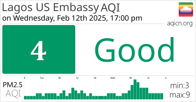 Lagos US Embassy, Nigeria Air Quality is Good