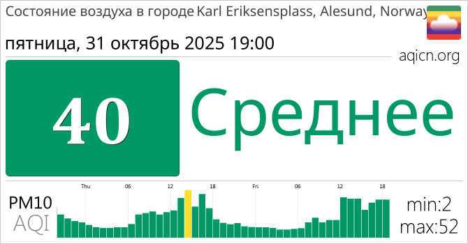 Качество воздуха в Karl Eriksensplass, Alesund, Norway, Норвегия является Среднее