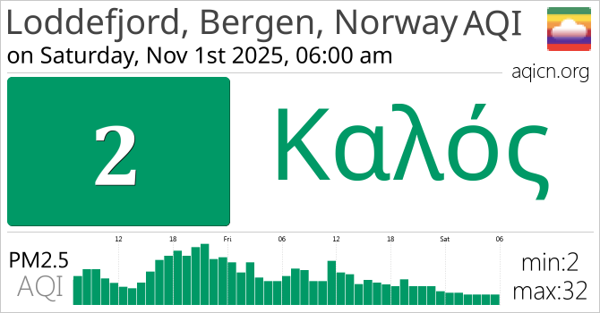 Η ποιότητα αέρα του Loddefjord, Bergen, Norway, Norway είναι Καλός
