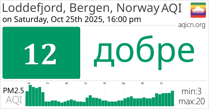 Качеството на въздуха в Loddefjord, Bergen, Norway, Norway е добре