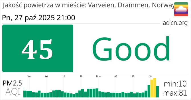 Jakość powietrza w mieście Varveien, Drammen, Norway, Norwegia jest Good