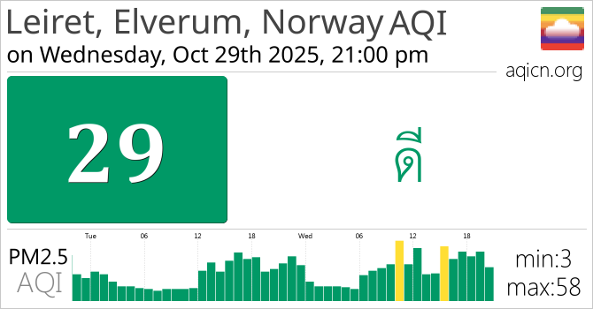 คุณภาพอากาศของ Leiret, Elverum, Norway, Norway อยู่ที่ ดี