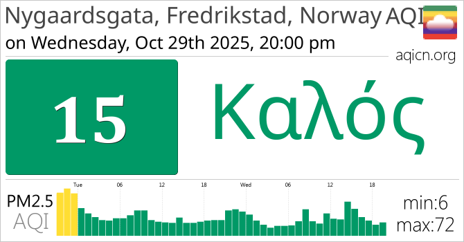 Η ποιότητα αέρα του Nygaardsgata, Fredrikstad, Norway, Norway είναι Καλός