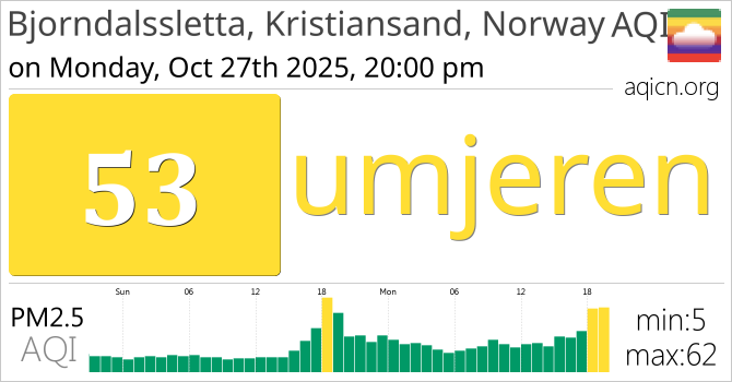 Kvaliteta zraka u gradu Bjorndalssletta, Kristiansand, Norway, Norway je umjeren