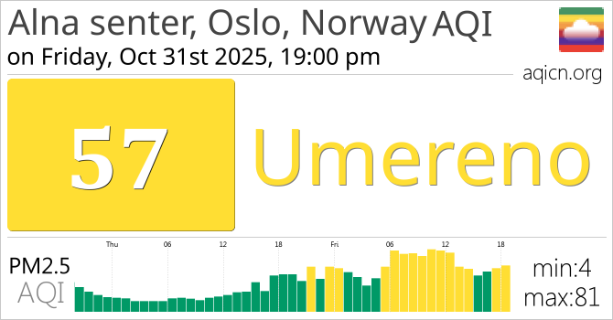Kvalitet zraka za Alna senter, Oslo, Norway, Norway je Umereno