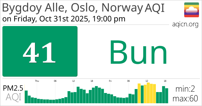 Calitatea aerului din Bygdoy Alle, Oslo, Norway, Norway este Bun