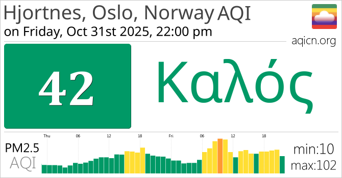 Η ποιότητα αέρα του Hjortnes, Oslo, Norway, Norway είναι Καλός