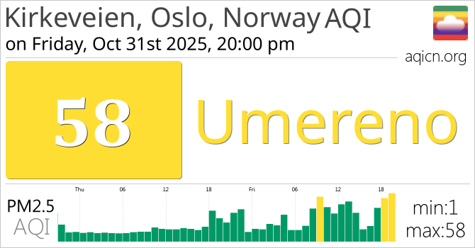 Kvalitet zraka za Kirkeveien, Oslo, Norway, Norway je Umereno