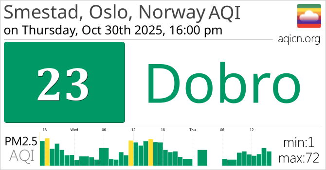 Kvaliteta zraka u gradu Smestad, Oslo, Norway, Norway je Dobro