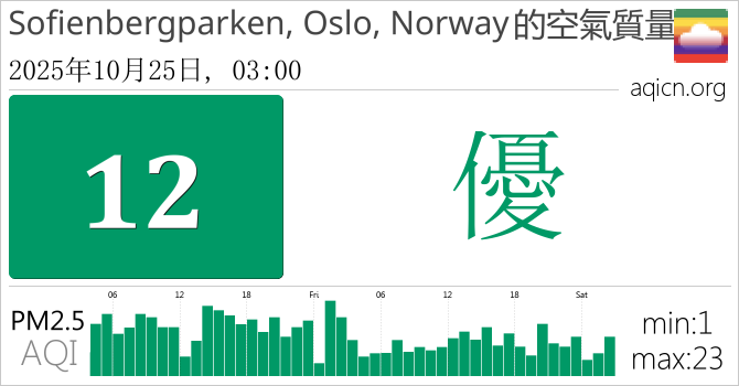 Sofienbergparken, Oslo, Norway, 挪威的空氣污染指數是優