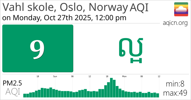 គុណភាពខ្យល់របស់ Vahl skole, Oslo, Norway, Norway គឺ ល្អ