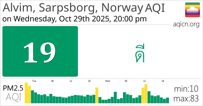 คุณภาพอากาศของ Alvim, Sarpsborg, Norway, Norway อยู่ที่ ดี