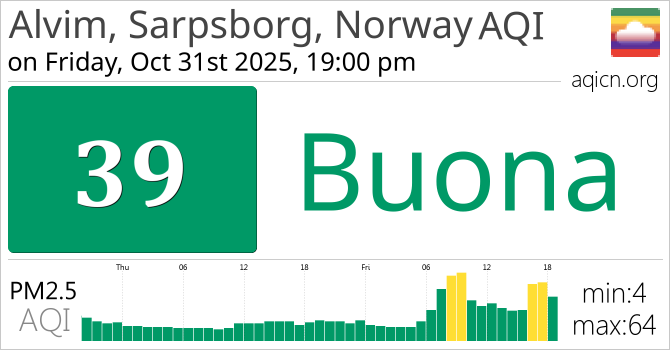 La qualità dell'aria a Alvim, Sarpsborg, Norway, Norway è Buona