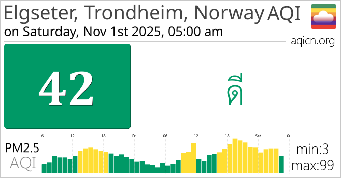 คุณภาพอากาศของ Elgseter, Trondheim, Norway, Norway อยู่ที่ ดี