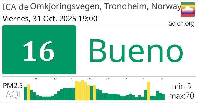 La calidad del aire de Omkjoringsvegen, Trondheim, Norway, Noruega es Bueno