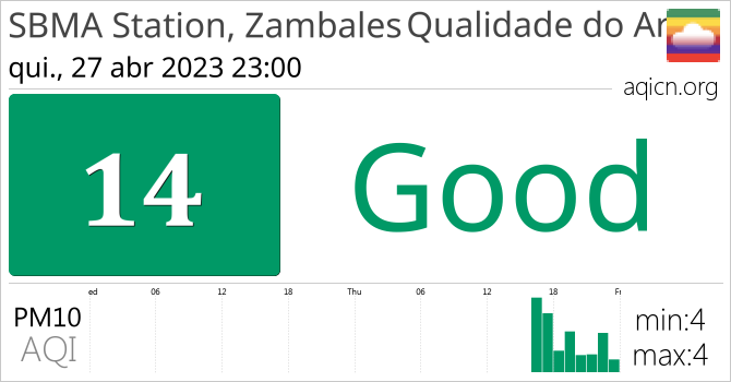 A qualidade do ar em SBMA Station, Zambales, Filipinas é Good