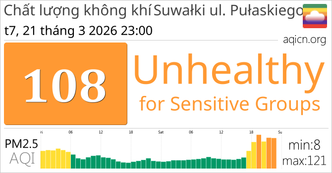 Chất lượng không khí Suwałki ul. Pułaskiego, Poland Unhealthy for Sensitive Groups
