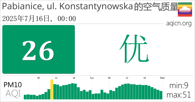Pabianice, ul. Konstantynowska, 波兰的空气污染指数是优