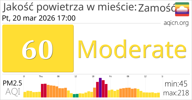 Jakość powietrza w mieście Zamość, Polska jest Moderate