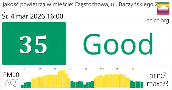 Jakość powietrza w mieście Częstochowa, ul. Baczyńskiego 2, Polska jest Good