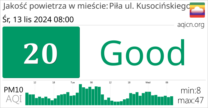 Jakość powietrza w mieście Piła ul. Kusocińskiego, Polska jest Good