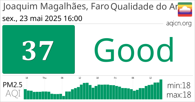 A qualidade do ar em Joaquim Magalhães, Faro, Portugal é Good