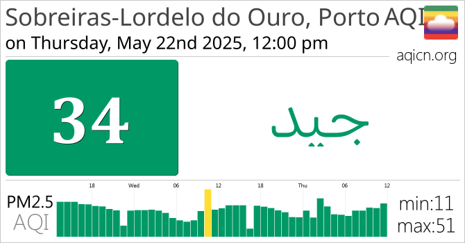 جودة الهواء في Sobreiras-Lordelo do Ouro, Porto, Portugal هي جيد