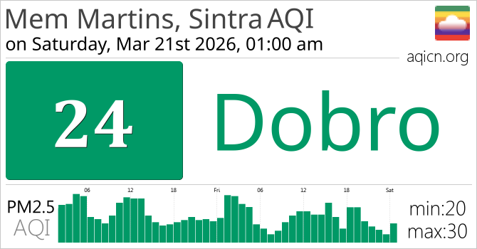 Kvaliteta zraka u gradu Mem Martins, Sintra, Portugal je Dobro