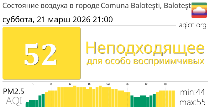 Качество воздуха в Comuna Baloteşti, Baloteşti, Румыния является Неподходящее для особо восприимчивых